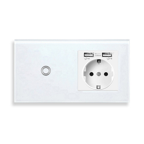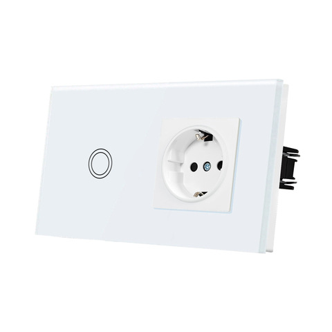 UE 157*86mm Panel de vidrio templado Interruptor táctil de pared y enchufe Toma de corriente y botón de sensor de lámpara Indicador Led